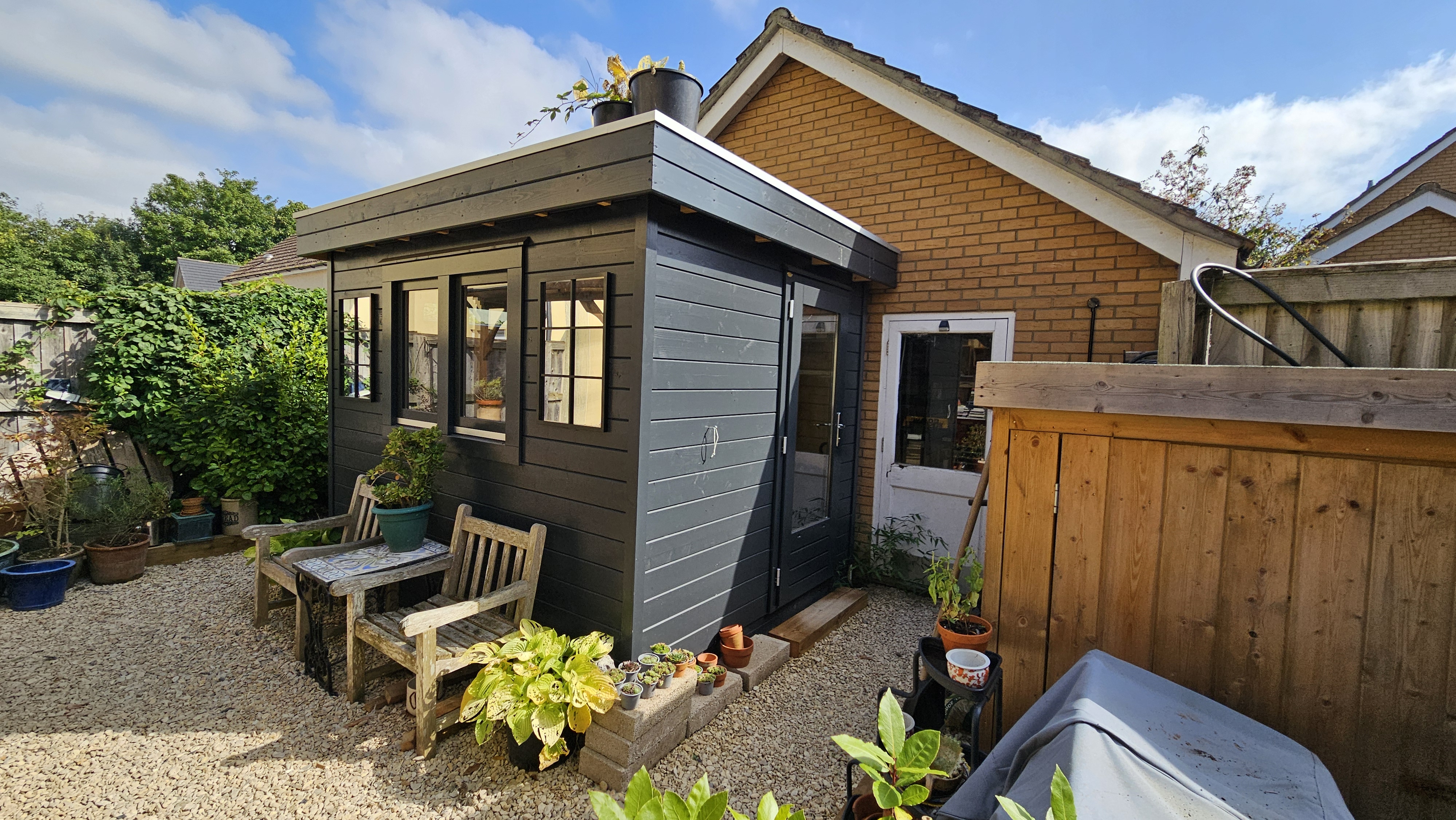 This stylish garden building boasts a modern design with a sleek flat roof. The entire Prima Standard structure stands under 2.5m high, which often eliminates the need for planning permission.